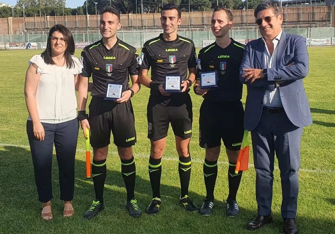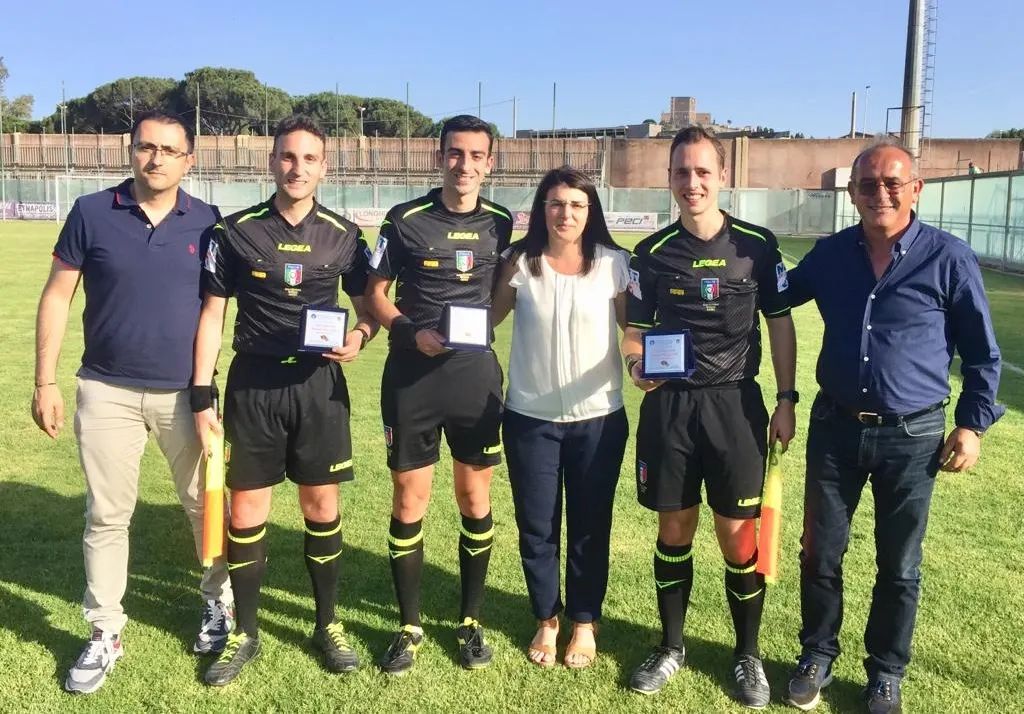 In foto la terna insieme al Presidente CRA Sicilia Cristina Anastasi unitamente al Presidente LND Sicilia Sandro Morgana e i Presidenti Francesco D'Anna della Sezione di Barcellona P. G. e Mimmo Poma della Sezione di Trapani.