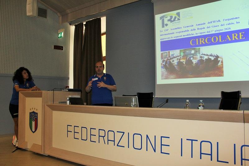 In apertura, il nuovo Responsabile Matteo Trefoloni ha presentato la sua squadra composta dai Vice Marco Ivaldi (nord), Riccardo Tozzi (centro) e Domenico Celi (sud), dal Coordinatore Marcello Marcato e dai Responsabili dei moduli Enzo Meli (Regolamento e Perfezionamento Tecnico - calcio), Francesca Muccardo (Regolamento e Perfezionamento Tecnico - calcio a cinque), Valentina Garoffolo (Talent & Mentor), Vincenzo Gualtieri (Preparazione atletica) e Angelo Pizzi (Bio-Medico), presente anche il Componente Stefano Papi.